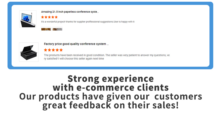 Máme jednorázová řešení kancelářského konferenčního vybavení s výzkumem a vývojem, distribucí, prodejem a souvisejícími službami, stejně jako vysoce kvalitní zatahovací motorizovaný zvedací stůl pro výzkum a vývoj společnosti Paperless Meeting Systems, nejnovější konferenční softwarový systém, silný tým návrhářů a vynikající tým poprodejních služeb. Náš výsuvný motorizovaný monitorový zvedací stůl pro bezpapírové zasedací systémy se používá hlavně ve špičkových administrativních kancelářích, velkých konferencích, různých luxusních hotelech, kancelářských budovách, laboratořích, bankách, vládních projektech, integraci systému konferenčních kanceláří atd. Náš konferenční software byl exportován do více než 100 zemí a měst a získal si dobrou pověst po celém světě. Pevně věříme, že s inovativními produkty, konkurenčním bezpapírovým meetingovým systémem Buy Discount a perfektními službami, China junnan Paperless meeting system tvrdě pracuje na získání trhu a zákazníků a těší se na lepší zítřky.