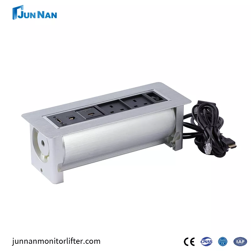 Guangzhou Junnan je profesionální čínský výrobce zapuštěných multifunkčních zásuvek se skrytou zástrčkou. Módní multifunkční zásuvka se používá hlavně v kuchyňské elektřině, stolní elektřině, elektřině zemské plošiny, elektřině konferenčního stolu. Kvalitní víceportový napájecí zdroj s multifunkční zásuvkou usnadňuje zapojování a odpojování. Vestavěná elektrická zvedací zásuvka bezdrátová nabíjecí deska 160 000krát Vysoce výkonné rychlé nabíjení.